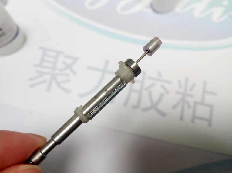 上個月末,一家制造電動牙刷的客戶寄電機轉(zhuǎn)子材質(zhì)過來,這是一個用于電動牙刷的核心零配件,客戶要求粘牢牙刷內(nèi)部零件的小磁鐵和不銹鋼,我司技術(shù)人員對客戶提供的材質(zhì)進行了仔細分析,小磁鐵片作為轉(zhuǎn)子,其不銹鋼與小磁鐵的粘接面較小,適合用聚力快干膠水。