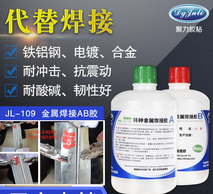 JL-109鋁合金膠粘劑易操作等特性粘接范圍廣,固化時(shí)間在24小時(shí),便于膠水作用發(fā)揮,24小時(shí)候之后就能發(fā)現(xiàn)把不銹鋼金屬粘的牢牢的,天氣熱也不易變性!