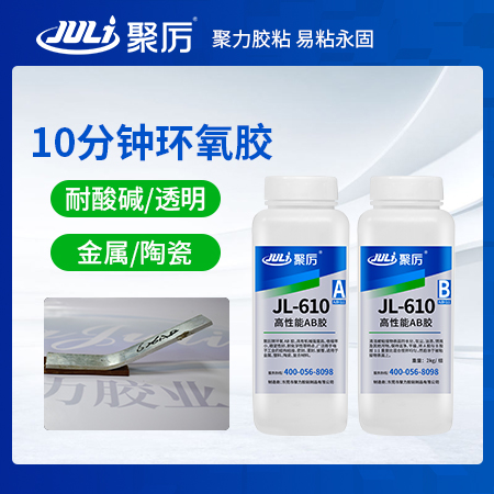 聚厲牌JL-610快干環(huán)氧樹脂AB膠為快速固化、透明粘稠狀環(huán)氧樹脂粘接劑,可低溫或常溫固化,固化速度快;固化后粘接強度高、硬度較好,韌性佳;廣泛應(yīng)用于電子電氣、工藝禮品、石油化工等行業(yè)的金屬、陶瓷、木材、玻璃及硬質(zhì)塑膠之間的封裝粘接。