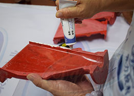 3、在被黏產(chǎn)品物表面均勻涂抹聚氨酯密封膠,單面打膠,點(diǎn)完膠后馬上把粘結(jié)面對(duì)準(zhǔn)粘合到一起并壓實(shí)就有一定的強(qiáng)度,完全固化要24小時(shí)以上。