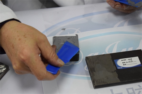 04—【強(qiáng)度測試】把鋁合金屬件放置在173度的烘烤箱內(nèi)幾個小時,然后取出,接下來用其他的厚板金屬對此鋁合金進(jìn)行敲打測試,結(jié)果并沒有脫膠,也沒有發(fā)生斷裂。