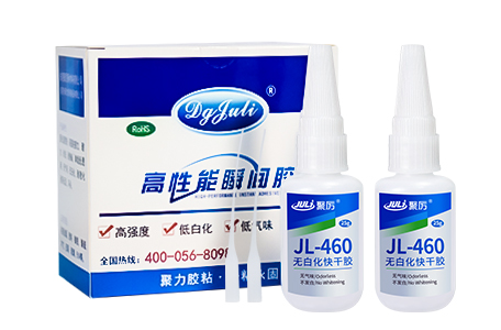 聚厲牌JL-460不發(fā)白瞬間膠主要成份氰基丙稀酸酯, 符合環(huán)保標(biāo)準(zhǔn),已通過歐盟ROHS標(biāo)準(zhǔn)和SGS檢測,固化后無發(fā)白的現(xiàn)象,聚力獨(dú)立研發(fā)生產(chǎn)的不發(fā)白快干膠粘劑,解決了產(chǎn)品固化后 起白霧的現(xiàn)象。單組分,施工便利。非常適合連續(xù)化生產(chǎn)線作業(yè)。具有高性能、無氣味、無白化、耐濕性等性能優(yōu)異。