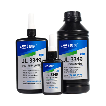 聚厲牌JL-3349 PET塑料專用UV膠水,屬于丙烯酸酯類膠粘劑,采用進口原材料,專門針對PET、PC、PVC、PS、亞克力等透明塑料材質(zhì)的粘接,透明度和強度比市面上大多數(shù)UV膠提高了40%以上,具有耐腐蝕、耐酸堿、耐老化、抗震動等優(yōu)點。